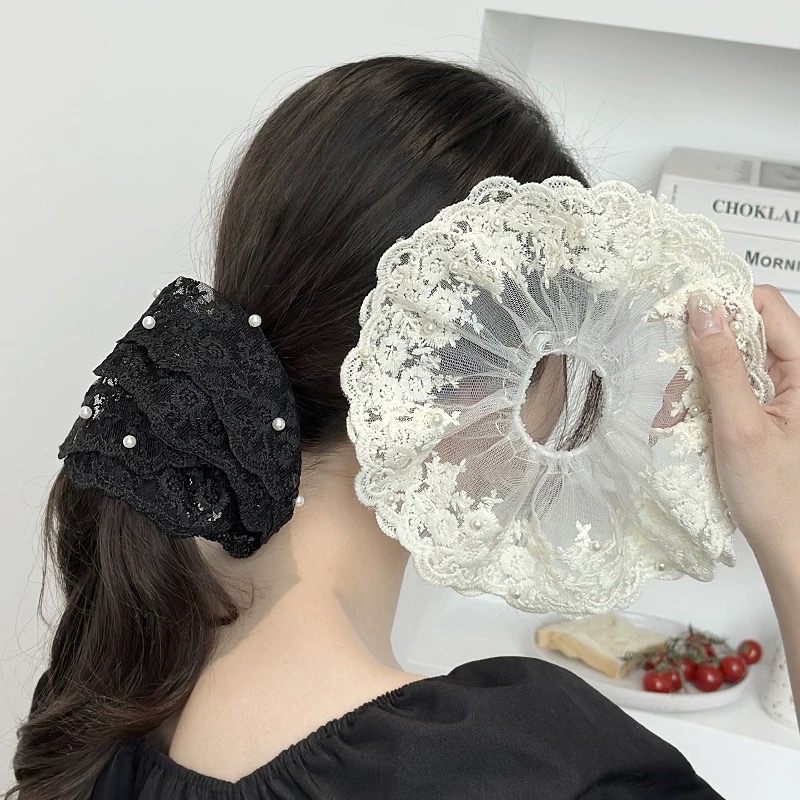کش‌موهای تور دانتل مرواریدی، ترکیب ظرافت و جذابیت که حتی ساده‌ترین مدل مو رو خاص و متفاوت نشون میده.