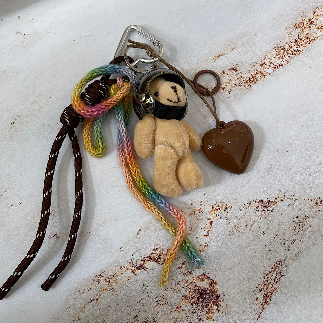 چارم بگ خرس با کلاه ایمنی و آویز قلب